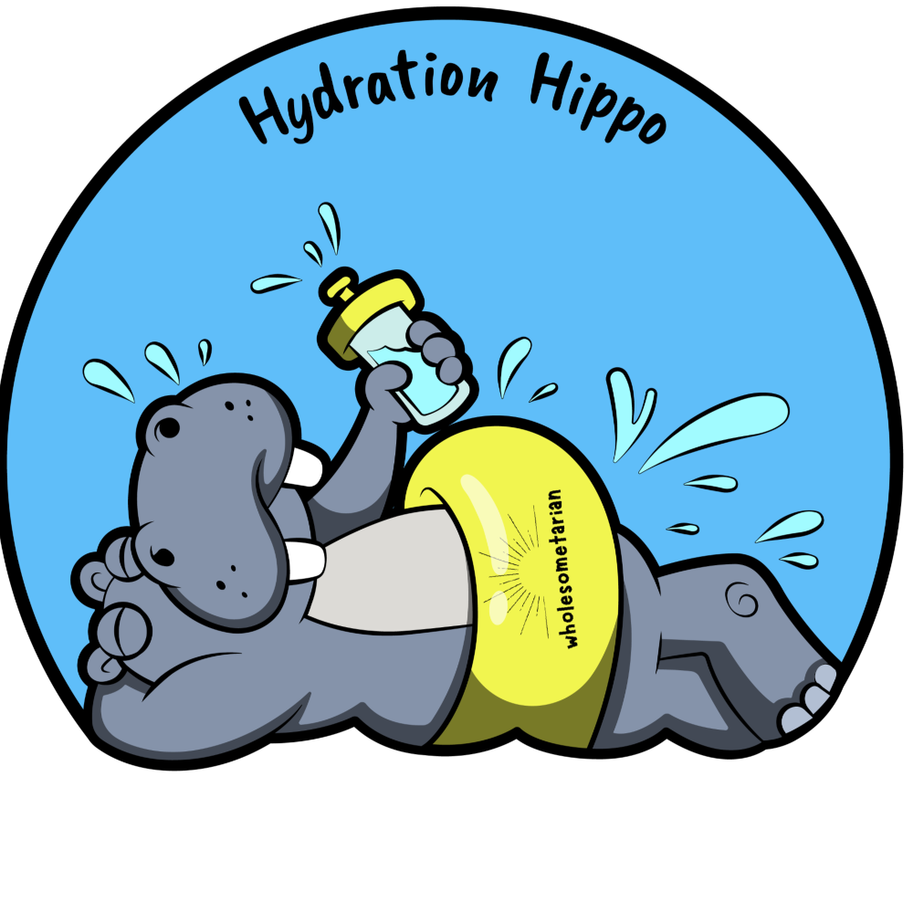 "Hello H₂O" Black Heavy Cotton Wholesometarian™ Tee Shirt with Hydration Hippo – Your Hydration Pillar