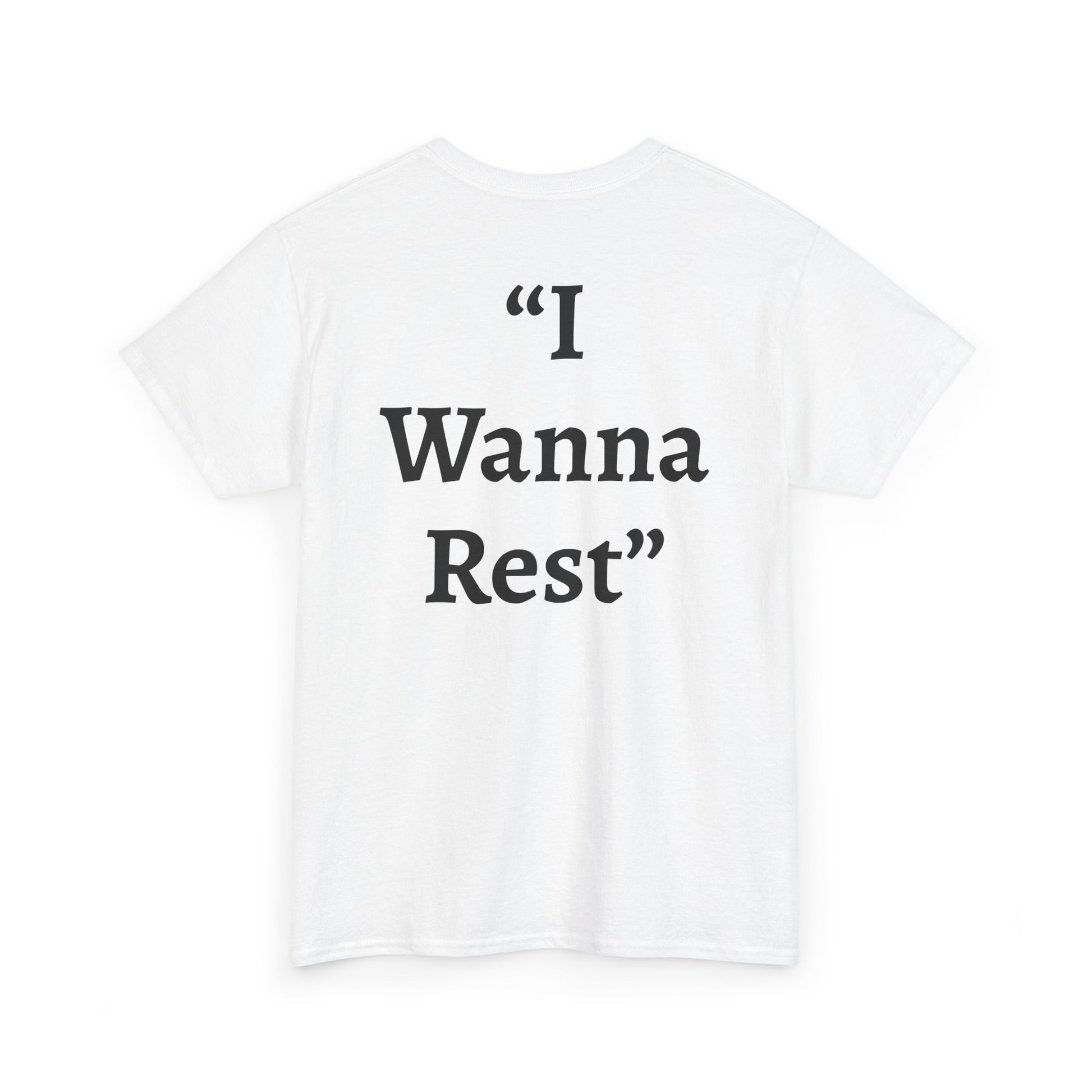 "I Wanna Rest" White Heavy Cotton Wholesometarian™ Tee Shirt with Sleepy Sloth – Your Rest Pillar